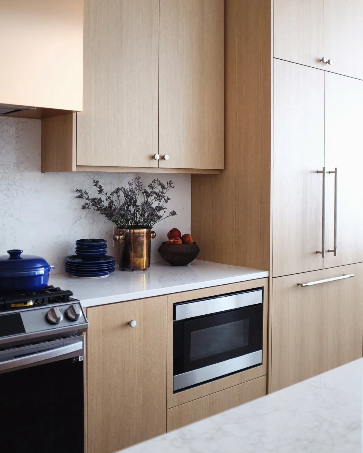 This project was incredibly special to us as it was centered around the adaptive re-use of a historic building - a heritage high-school undergoing renovations to create a multi-dwelling residence. We worked closely with the clients and the builder from early on in the project to design the layout and interiors for their custom unit. Wanting to honour our clients’ love for Scandinavian arts and design, we favoured a minimal and modern design aesthetic for the interior with colourful pops such as a bespoke copper range hood and sculptural lighting. To offset these details we infused minimalist profiles through the millwork and furniture and opted for a neutral colour palette.